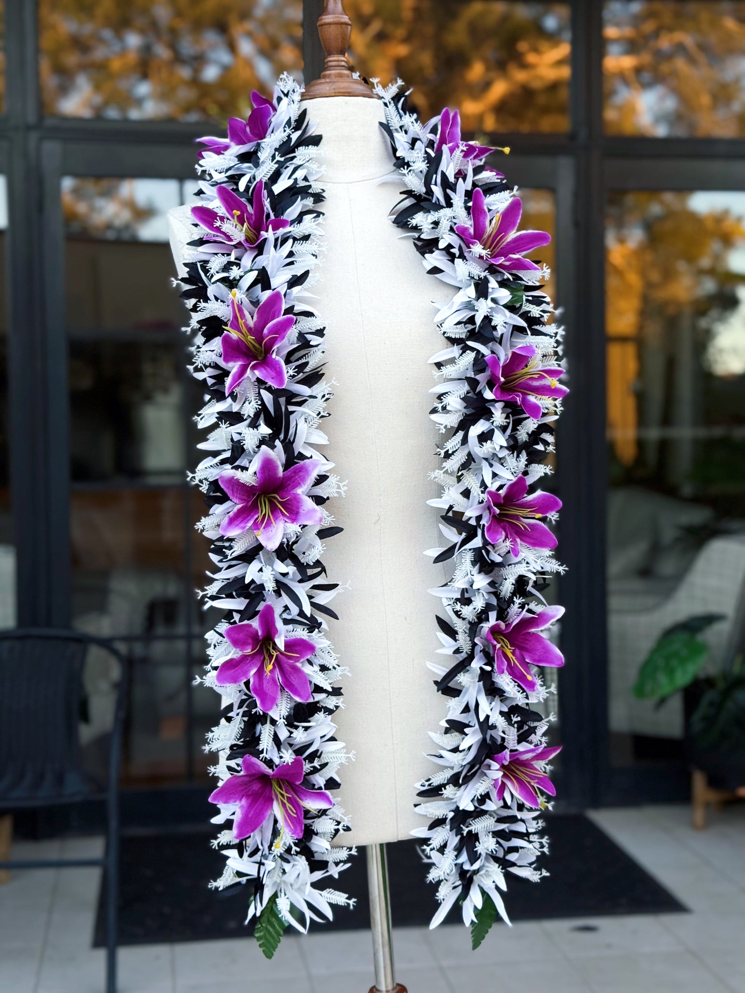 WHITE & BLACK SPIDER LILY WITH DARK PINK LILY'S -L170CM - Épuisé