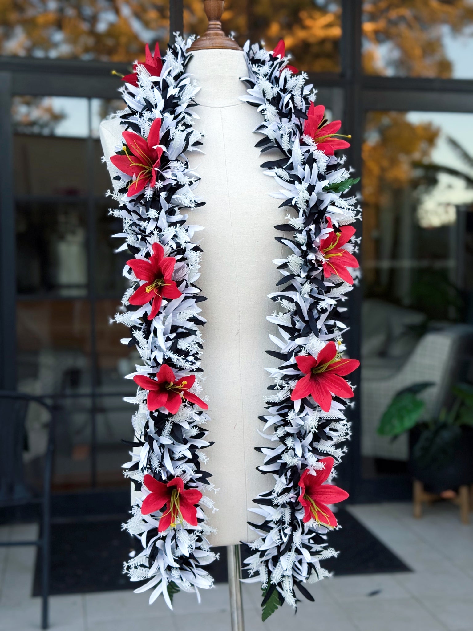 WHITE & BLACK SPIDER LILY WITH RED LILY'S -L170CM - Épuisé