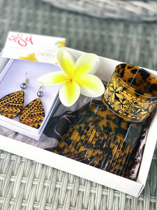 BROWN SET -bracelet $20, hair comb $20, earrings $15, scarf $15, frangipani $8 - Sold Out